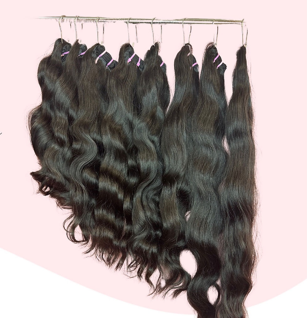 Our Indian hair has the reputation of being the best hair of the industry. t's purity and background. Our bundles are collected from young female donors, washed and are wefted. The hair is already full, healthy and naturally has a luster. Each bundle will be similar in texture but no bundle will be exactly the same.